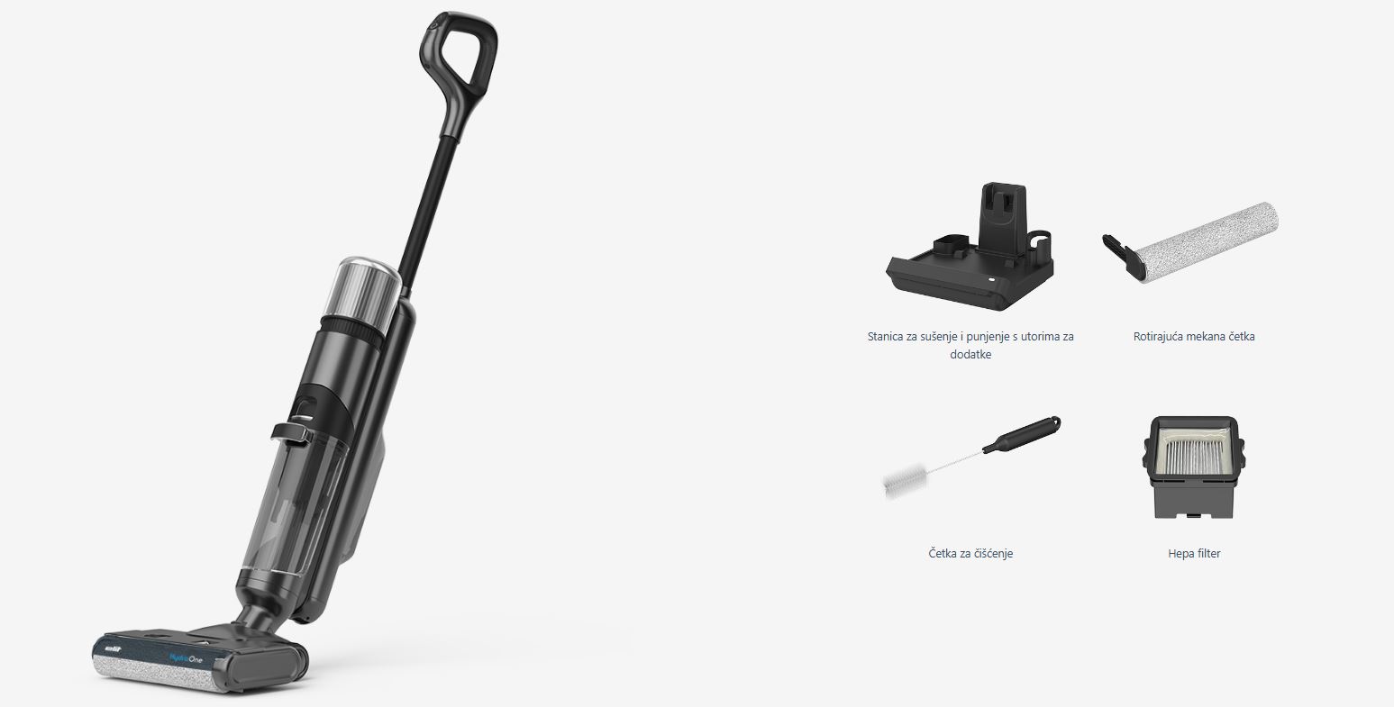 Do 50 minuta mokrog usisavanja bez gubitka snage. HEPA filter filtrira fine čestice prašine i alergene prebacujući u spremnik za prljavu vodu. Snažan BDCL motor osigurava konstantnu snagu uređaja tokom cijelog vremena korištenja. Velike usisine snage od 13 kPa čišćenje je brzo i jednostavno. Odvojeni tank za čistu vodu, osigurava pranje isključivo čistom vodom, a sva prljavština zarobljena je u zaseban tank, filtriran HEPA filterom.